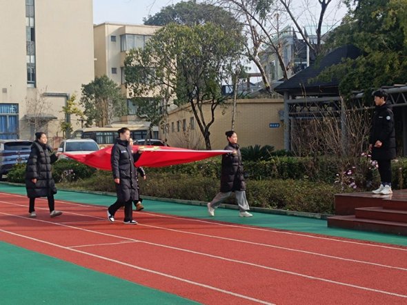 鲜艳的五星红旗冉冉升起,全体师生肃立行注目礼,伴随着嘹亮的国歌声,开学典礼拉开帷幕,新的学期正式启航。