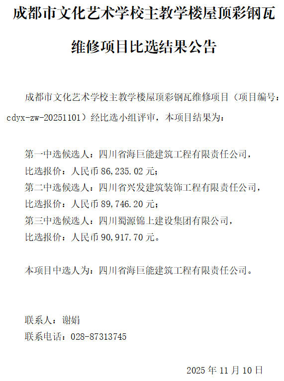 彩钢瓦采购项目结果公告