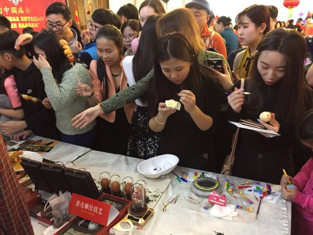 年前,一场精心布置的非遗展依然使我们记忆犹新。2月10日,由文化部中外文化交流中心、中国驻蒙古国大使馆和乌兰巴托中国文化中心联合举办的2018“欢乐春节——行走的中国庙会”活动开幕式在蒙古乌兰巴托酒店隆重举行。庙会气氛热烈,品文化、看节目、吃小吃,现场洋溢着节日欢乐喜庆的气氛和浓浓的中国年味。此次之行,成都市文化艺术学校精心甄选,派出了具有代表性的“中国非遗手工展示和互动体验项目”;技艺传授,真情互动,让非遗手工技艺现场复活,受到现场民众的广泛热捧,该活动集中开展2天,到场参与观众达到上千人次。